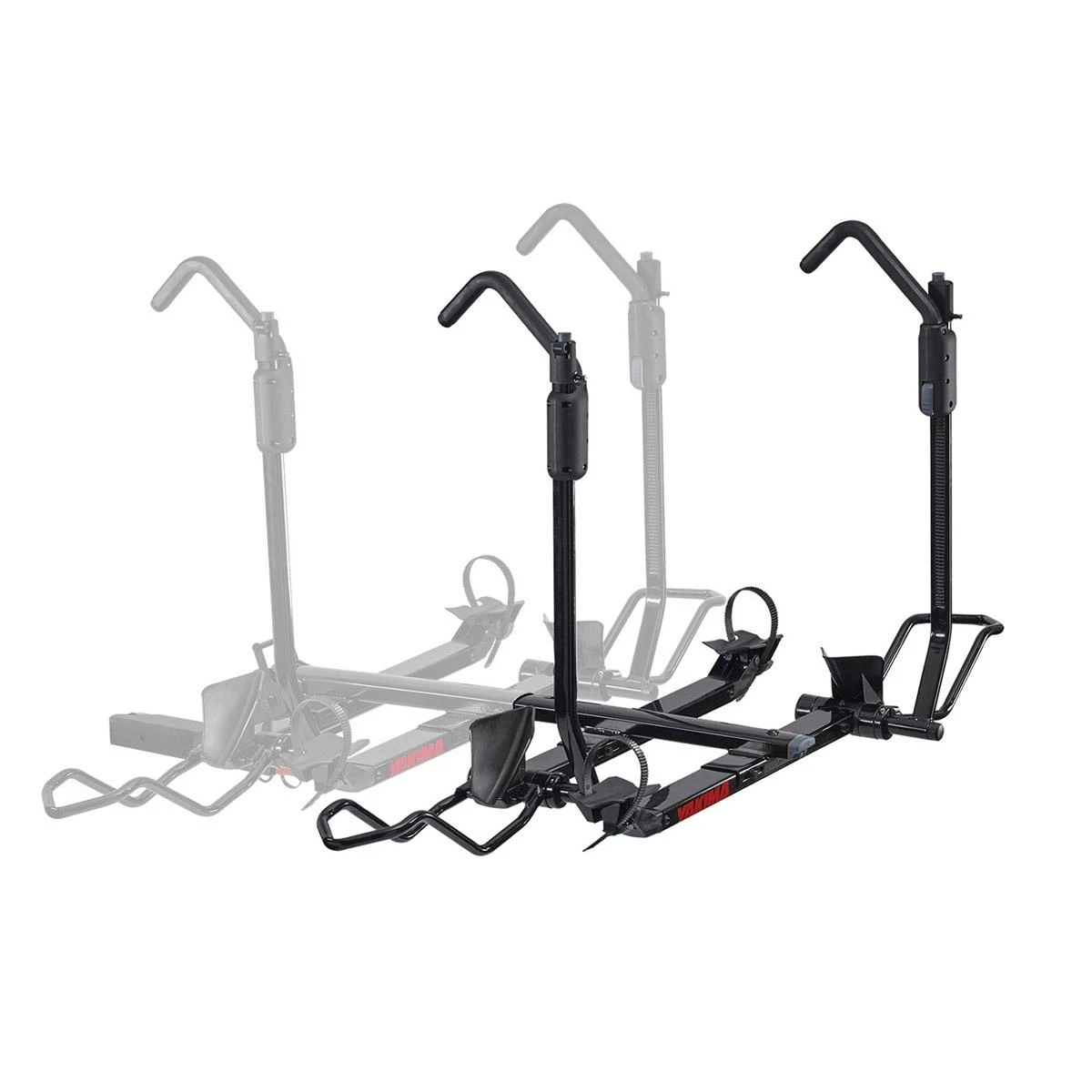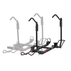 Built to handle newer bike features like fat tires and boost hubs while still carrying the classics, the Yakima HoldUp EVO+2 Bike Rack secures bikes at the wheel with the StrongArm hook to prevent scratches or chipping on the frame. Tilt the rack with bikes loaded for quick rear-of-vehicle access, and fold up the empty trays when not in-use. This bike hitch tray attaches to the HoldUp EVO to transform your double-hauler into a four-bike party train.